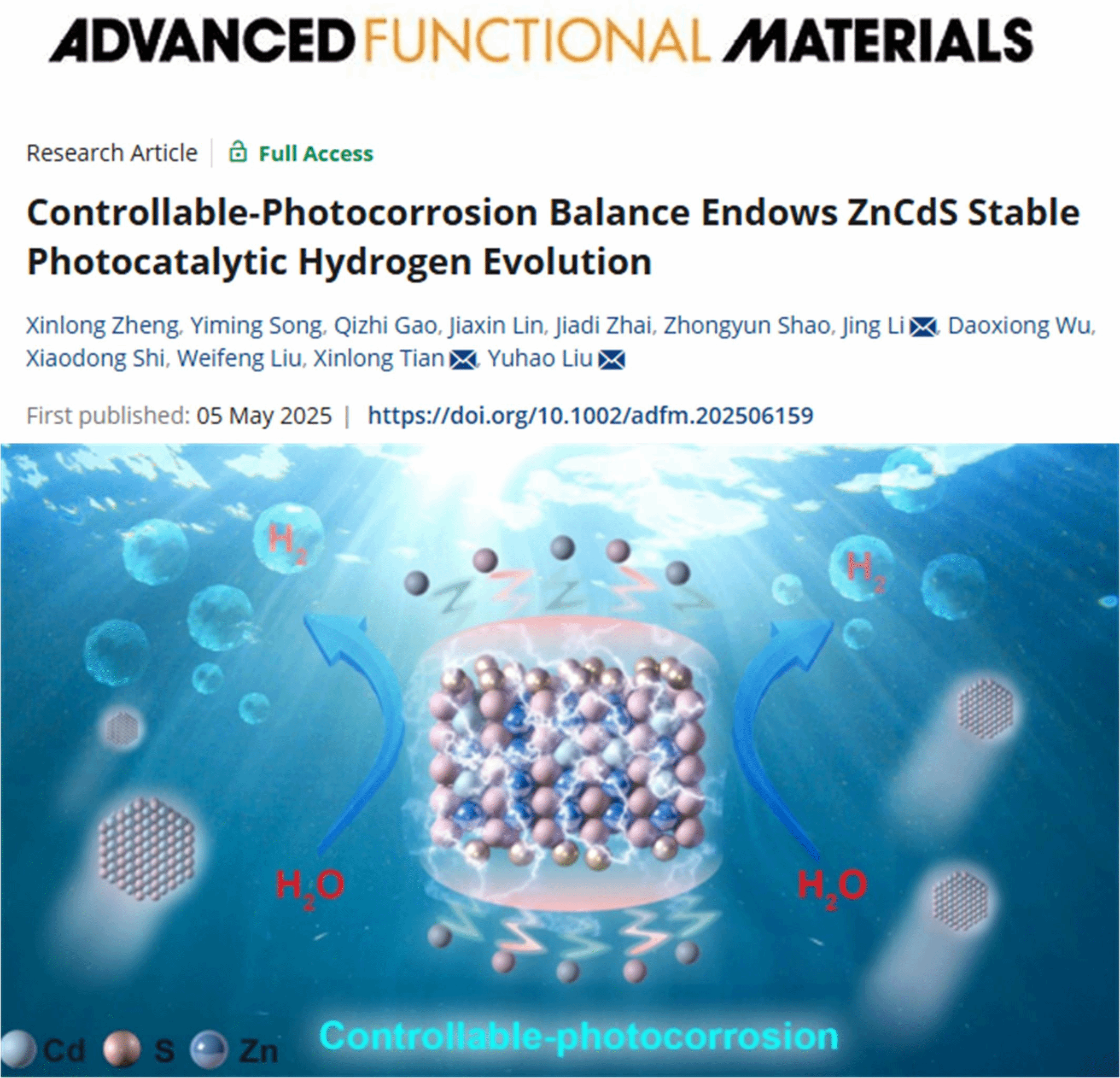 近期,物理与光电工程学院刘雨昊副教授在《Advanced Functional Materials》发表题为《Controllable-photocorrosion balance endows ZnCdS stable photocatalytic hydrogen evolution》的研究论文。海南大学2022级博士研究生郑馨龙、2024级博士研究生宋一铭、高奇志为论文共同第一作者;海洋科学与工程学院李静副教授、田新龙教授、物理与光电工程学院刘雨昊副教授为论文共同通讯作者。