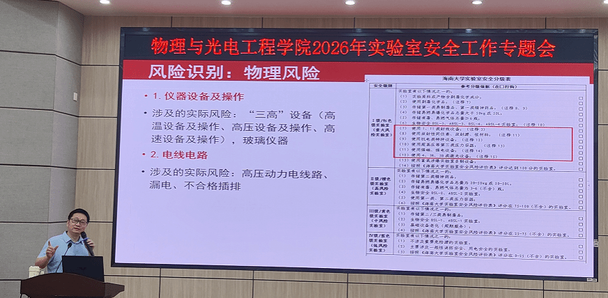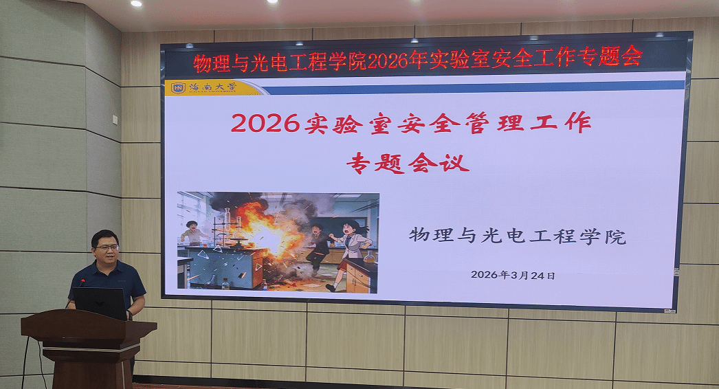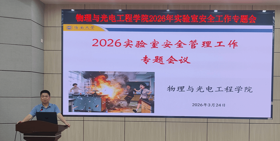为学习贯彻“海南大学2026年实验室安全管理工作专题会”精神和落实《关于开展实验室安全隐患排查的紧急通知》(海大实〔2026)16号)文件要求,3月24日下午学院召开“2026年实验室安全管理工作专题会”。学院党总支书记黄文强、副院长庾名槐、刘京、余金龙等学院领导、实验中心主任陈文钦、各科研实验室负责人、安全员、实验室网格员、实验中心管理教师以及参与科研实验的研究生参加会议,会议围绕实验室安全风险防控、责任落实等关键内容进行部署与交流。
