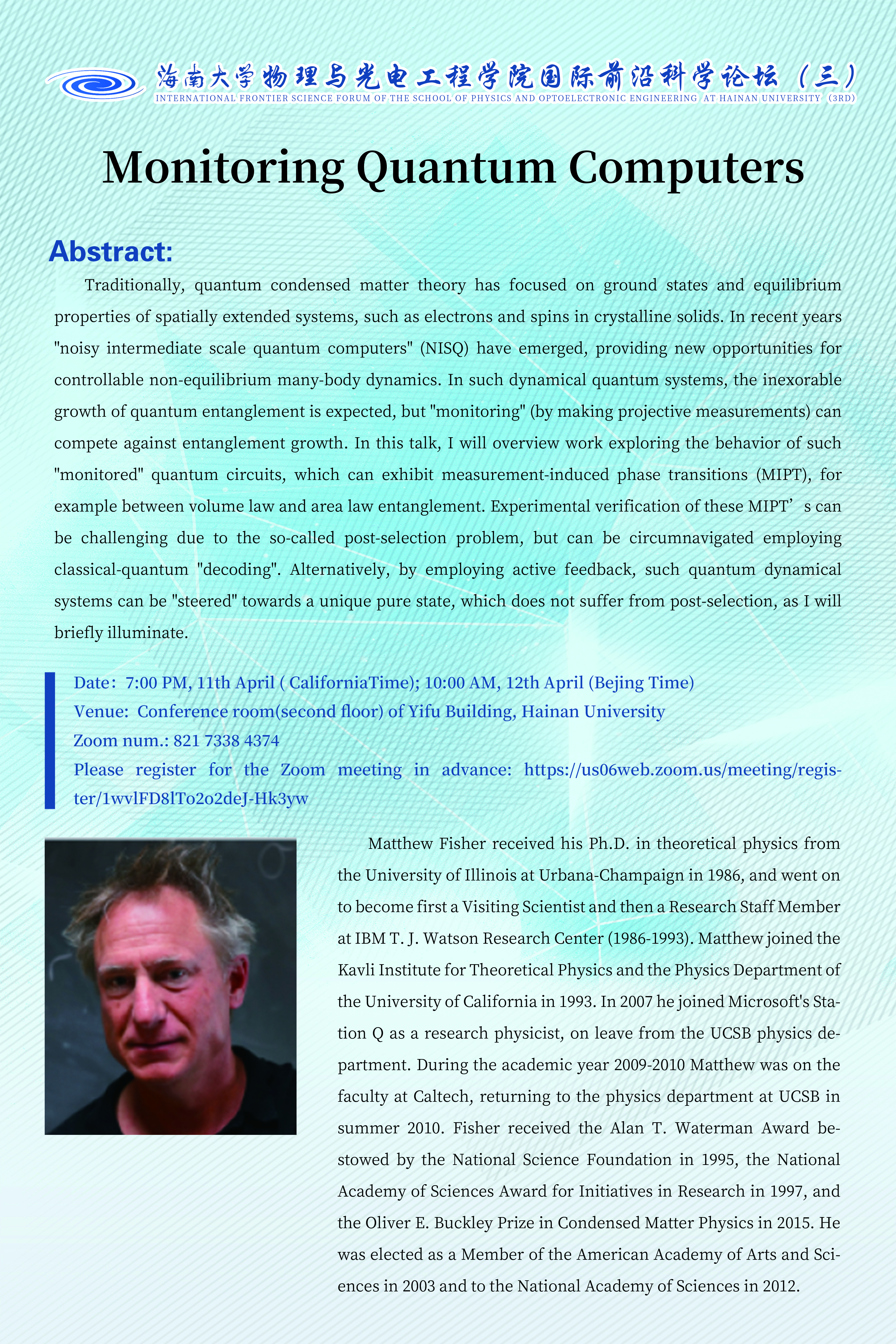 国际前沿科学论坛(三):Monitoring Quantum Computers
