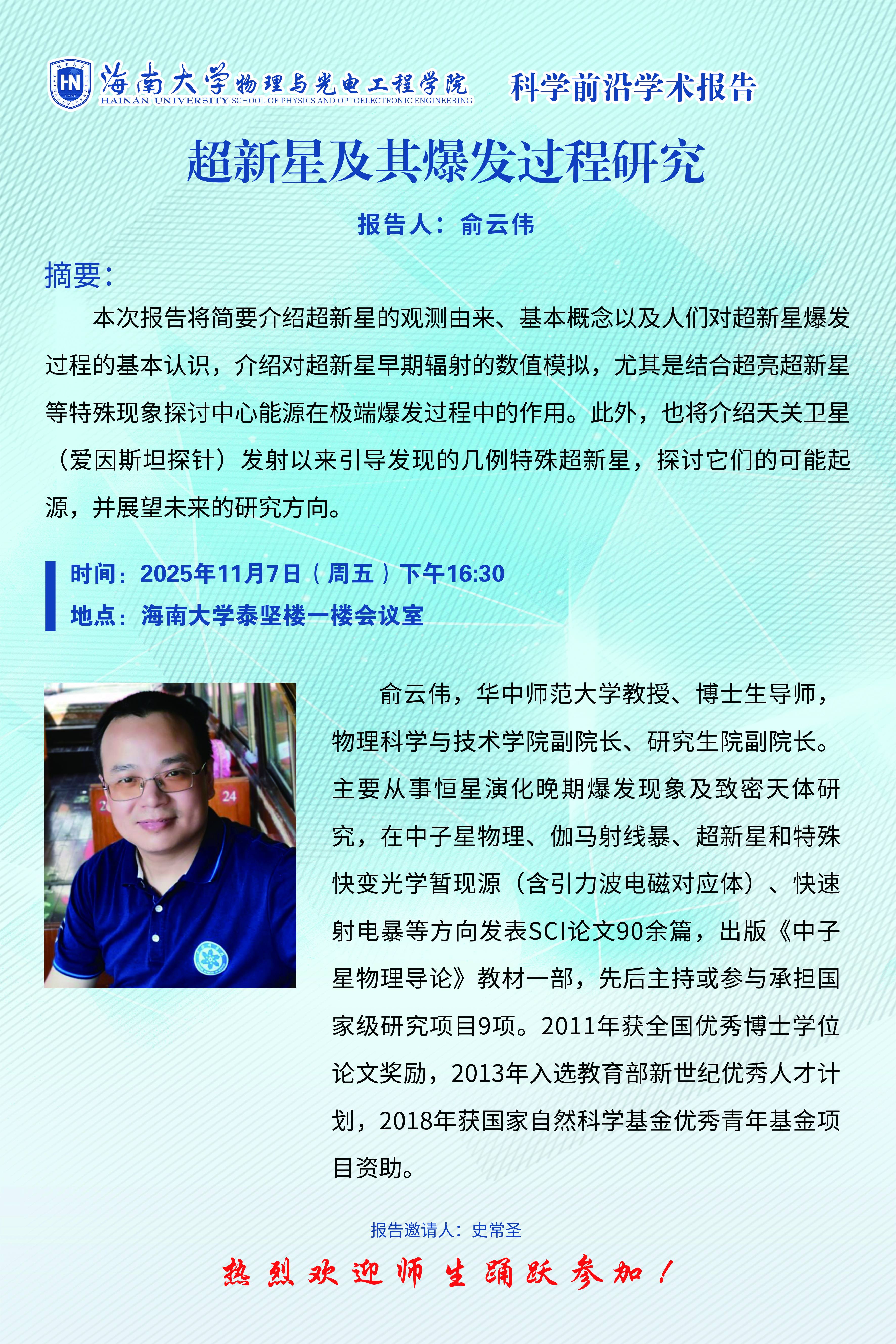 科学前沿学术报告(六十六):超新星及其爆发过程研究