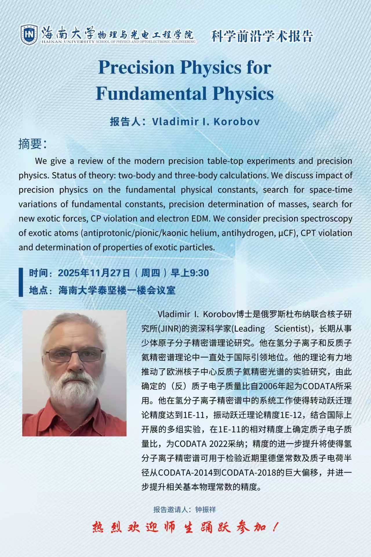 科学前沿学术报告(七十):Precision Physics for Fundamental Physics